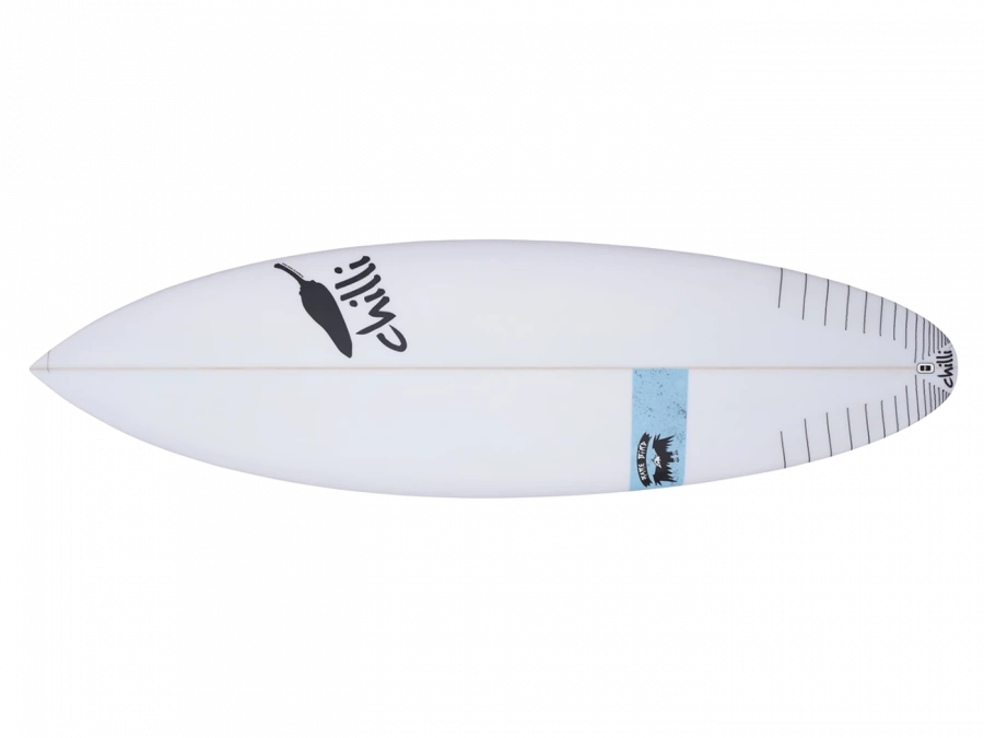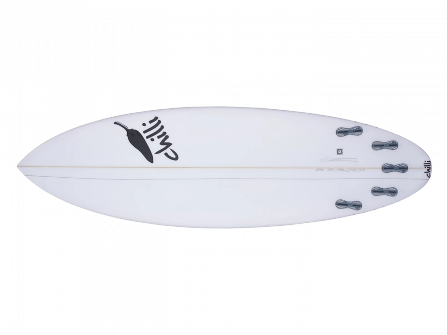 The Rare Bird, Chilli Surfboards‘ best all-round design. If you liked the Toucan and Birdseye you are going to love the Rare Bird. This board has proven to be our best selling and most favoured Chilli Surfboard of ALL time! Chilli basically built this board from Mitch Coleborns favourite Toucan in which he rode a 5’4 with a 5’6 width and thickness. With a single concave under the front foot back to a double concave and slight vee out through the back fin for easy transition rail to rail. The wide point is a little further forward allowing a smooth flow in smaller waves. Combining that with a medium rail and pulled in thumb tail this board screams versatility and forgiveness. Quin fin setup has proven a huge plus with this model allowing it to perform in small stuff right up to head high barrels. We suggest you ride this 2-4 inches shorter than your standard shortboard. It sits nicely in between your Sugar and your A2. ® Chilli Surfboards