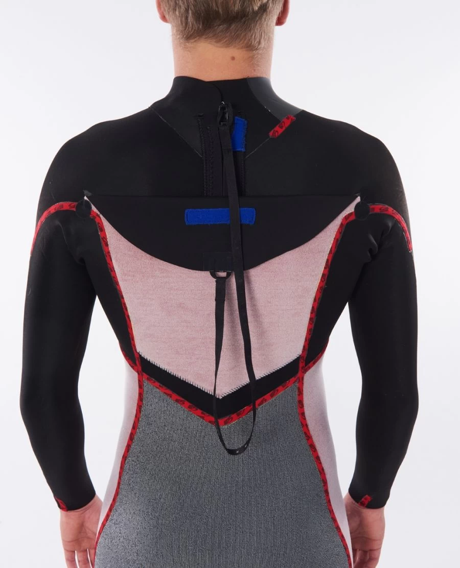 Dadurch hat er in allen Bereichen wo es auf maximale Flexibilität ankommt, noch mehr Bewegungsfreiheit. Somit Elastomax 5 in allen Key Performance Panelen, Elastomax 4 Thermoflex Neopren an Körper und Bein und natürlich besitzt der Anzug im Rückenbereich den eingearbeiteten zweiten Rücken, der das Wasser durch das hydrophobe Flashbomb Material vom Körper weg leitet und in nur 15 Minuten trocknet. Das E4 ist 20% leichter als das Vorgängermaterial, wärmer und noch flexibler. Im Rumpf und Beinen ist das neuartige Thermoflex Neopren eingearbeitet, welches verbessertes Superstretch Neopren ist. In der neusten Linie wurde zu den bereits GBS verklebten Nähten dem Anzug noch eine 3/4 Versiegelung mit dem superflexiblem E5 Tape von innen verpasst, welches für extra Wärme sorgt, sowie ein Batwing System welches eine zusätzliche Barriere für eintretendes Wasser bildet.