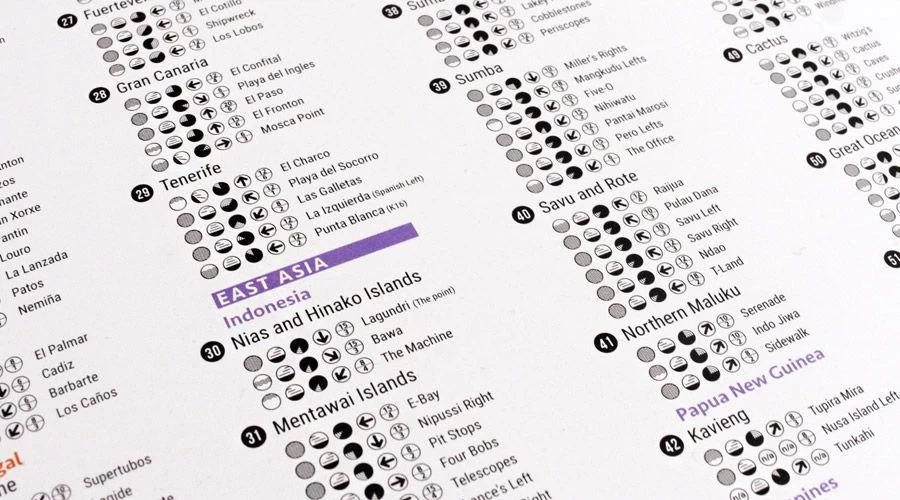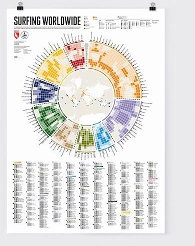 Nach Kontinenten unterteilt zeigen wir für jede Region auf einen Blick die besten Zeiten zum Surfen.